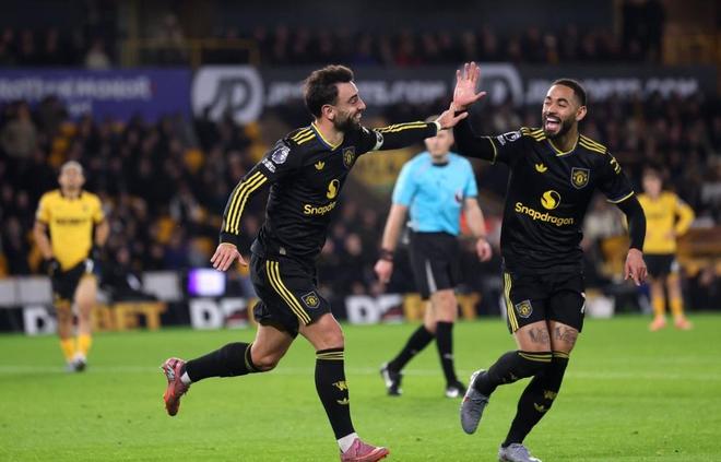 上轮英超战平深陷降级区的铁锤帮西汉姆联后,红魔曼联近五轮联赛仅取得1胜3平1负的成绩。不过,在少赛一场的情况下,他们仅落后英超第四名水晶宫4分。赛季结束后仍有很大概率获得欧战资格,但要实现这一目标,剩余赛程必须尽可能多拿分。这一天的比赛,曼联开启了英超联赛第十五轮测试赛,并以全场比赛的方式挑战狼队。本场比赛,曼联凭借2射1传的神勇表现,打进了B费的三粒进球。他们4-1击败狼队,并在切尔西扳平比分。由于净胜球不足,曼联暂时排名英超第六。狼,曾经被称为“新狼”英超的顶级球队,早已失去了巅峰的辉煌。前十四轮过后,他们只取得了2胜12负的战绩。他们也是本赛季唯一一支没有尝到成功滋味的球队。不过,在上赛季与红魔的两轮交锋中,狼队主客场击败了曼联。如今再次相遇,阿莫林能否带领球队报仇雪恨,成为此战最大的看点。不想有机会在英超垫底、渴望主场取胜的曼联,在莫利纽克斯球场追随了人们最熟悉的三后卫体系球队。首发门将拉门斯、马兹拉维、海文和卢克肖组成后防线。阿马德、卡塞米罗、B费和达洛特坐镇中场。姆贝莫和芒特联手双前腰,库尼亚一人。比赛第8分钟,曼联创造了绝佳的破门机会。达洛特获得了l接到队友传球后,他从左路快速移动,获得了单刀机会。不过推射角度太正,被狼队门将扑出。第25分钟,曼联远距离领先。库尼亚在前场断球后,快速带球杀入狼队禁区,然后传给跟上的B费。后者倒地破门,帮助曼联1-0领先。第29分钟,曼联有机会扩大领先优势,但姆贝莫的唯一射门被狼队门将扑出。库尼亚随后的跟进射门被门线上的防守球员解围。逃过一劫的狼队在半场结束前将比分追平。沃尔夫左路倒三角传球,贝勒加德破门得分,让两队以1-1的比分回到中场更衣室。易边再战第50分钟,B费长传发起进攻并将球交给了前场的姆贝莫。后者将球传给左侧的库尼亚,但射门无力,轻易被狼队门将没收。两分钟后,红魔断球后立即反击。达洛特从中路左路送出一记无私的传中。无人盯防的MBEMO轻松推射破门,帮助曼联2-1领先。第62分钟,曼联结束了胜利悬念。 B 费从禁区前方传球。突然推进的芒特获得了一次无得分机会。后者轻松推射破门,将领先优势扩大至3-1。第81分钟,狼队禁区内手球,送给曼联点球机会。 B费主罚命中,将比分定为4-1。 【比赛数据】作为本场比赛曼联的最大功臣,B费首战就创造了两项重大奇迹。首先,他在英超联赛中打进了66个进球阿雷尔的进球数仅次于罗纳尔多,在葡萄牙球员中打进了103球。其次,库特连续五场英超联赛执教,成为历史上继泽特(2003年)、法布雷加斯(2014-15赛季)、德乌洛费乌(2015年)和萨拉赫(2023年)之后的第五人。